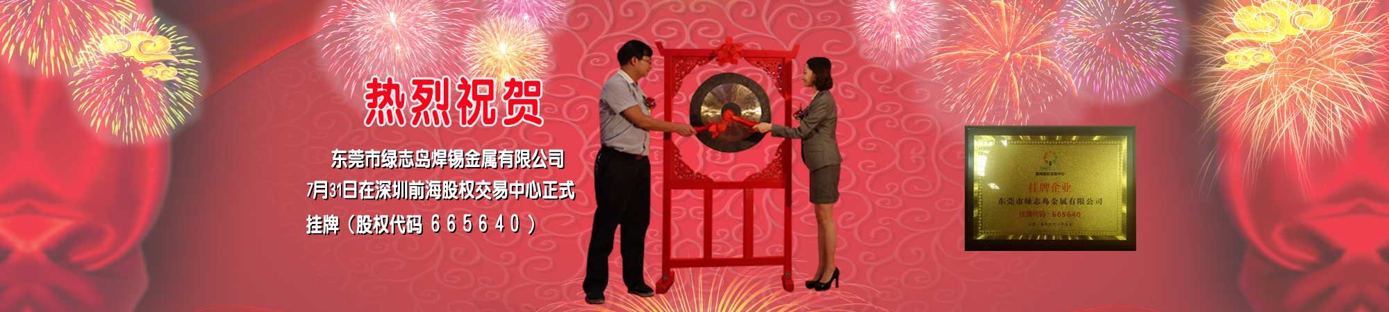 東莞市綠志島金屬有限公司原名為綠之島焊錫制品廠,早年從事冶金行業,公司成立于2001年。公司擁有完整的產品體系,主要生產焊錫膏,焊錫絲,焊錫條,無鉛焊錫絲,無鉛焊錫條,無鉛錫膏等。公司為客戶提供完善的焊接技術支持。在北京、西安、武漢、重慶、中山、深圳、廈門等代理商。綠志島秉承“領先綠色焊錫科技”,在無鉛錫膏、無鉛錫絲、無鉛錫條的發展上沒有停止步伐,并且走在行業的前線。[了解詳細]