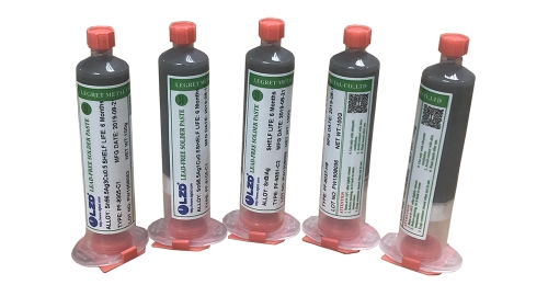 • 針筒無鉛錫膏 產品型號:針筒型 針筒錫膏中每個合金顆粒都被助焊劑均勻包裹著,并穩定炫富于錫膏中,并可解決很多點錫和針轉印過程中的多種出錫和連錫的問題。針式錫膏膏體細膩,點涂均勻,出錫流暢,不斷錫。