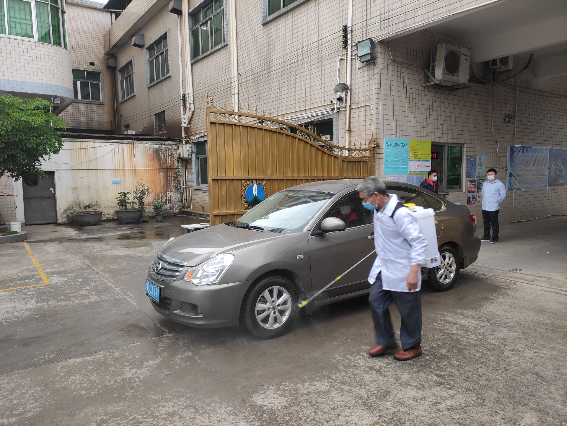 ▲對剛進廠的車進行消毒