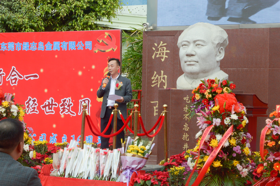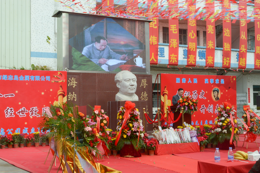綠志島實業(yè)由朱祖生先生創(chuàng)業(yè)于2001年,經(jīng)過多年的發(fā)展奮斗,現(xiàn)在公司產(chǎn)品包括焊錫條、焊錫絲、焊錫膏,清洗劑,防銹劑,潤滑油等。綠志島實業(yè)的發(fā)展,在以毛主席思想為信仰的指引下突飛猛進,在“吃水不忘挖井人”的感恩心下穩(wěn)步發(fā)展。為了鞏固毛主席思想作為綠志島的信仰核心,綠志島于2012年12月25日從泰山迎接來毛主席泰山石像,并立于公司內(nèi)部。自此,綠志島每年12月26日都會齊聚眾多認同毛主席的追隨者,在綠志島內(nèi)緬懷紀念偉大領(lǐng)袖毛主席。